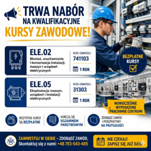 Kwalifikacyjne Kursy Zawodowe w zawodzie technik elektryk rozpoczynją zajęcia 13 września. Plan zostanie zamieszczony